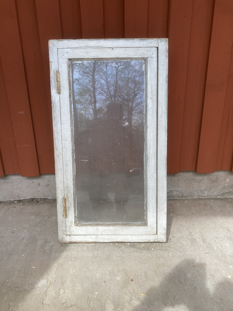 B:129,5 H:144 D:17,5, munblåst glas, skada karmbotten 2-luftsfönster med karm, 129,5x144 cm, kopplat