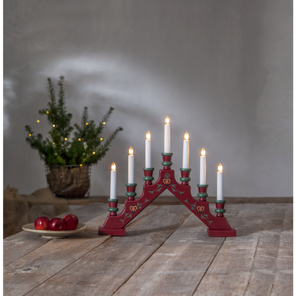 Traditionell träljusstake med fina detaljer. Med sina 7 ljuskällor ger ljusstaken en mysig belysning och en hemtrevlig julkänsla.