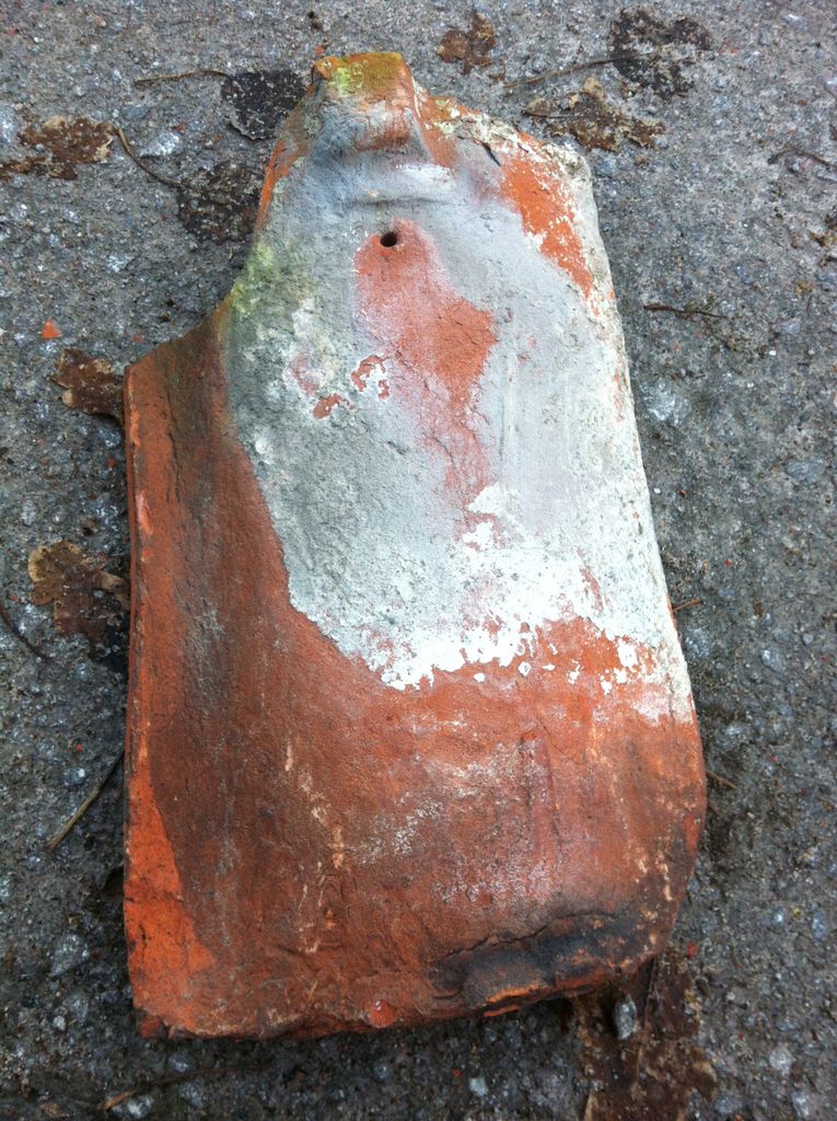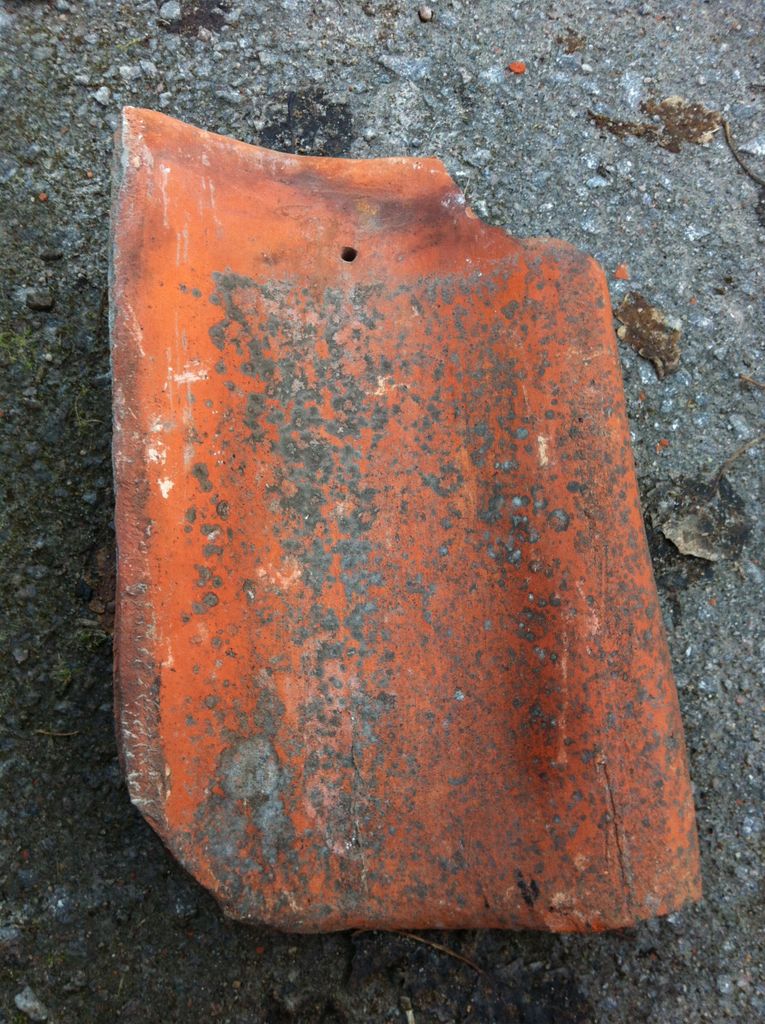 Beskrivning av Antik handslagen, 1-kupig tegelpanna Längd: 390 mm Bredd: 260 mm Höjd (dal-topp): 45 mm Klacklängd: 355 mm