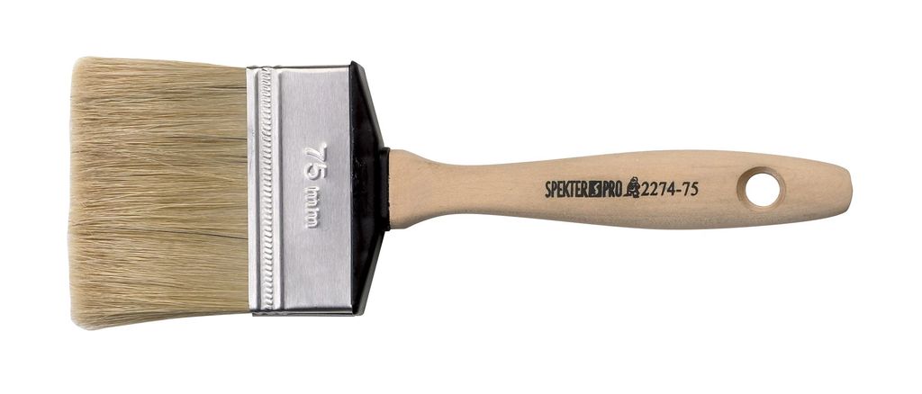 Beskrivning av Fasadpensel Pro 75 mm Tak/vägg/fasad pensel med naturborst. Till traditionella färger och lacker.