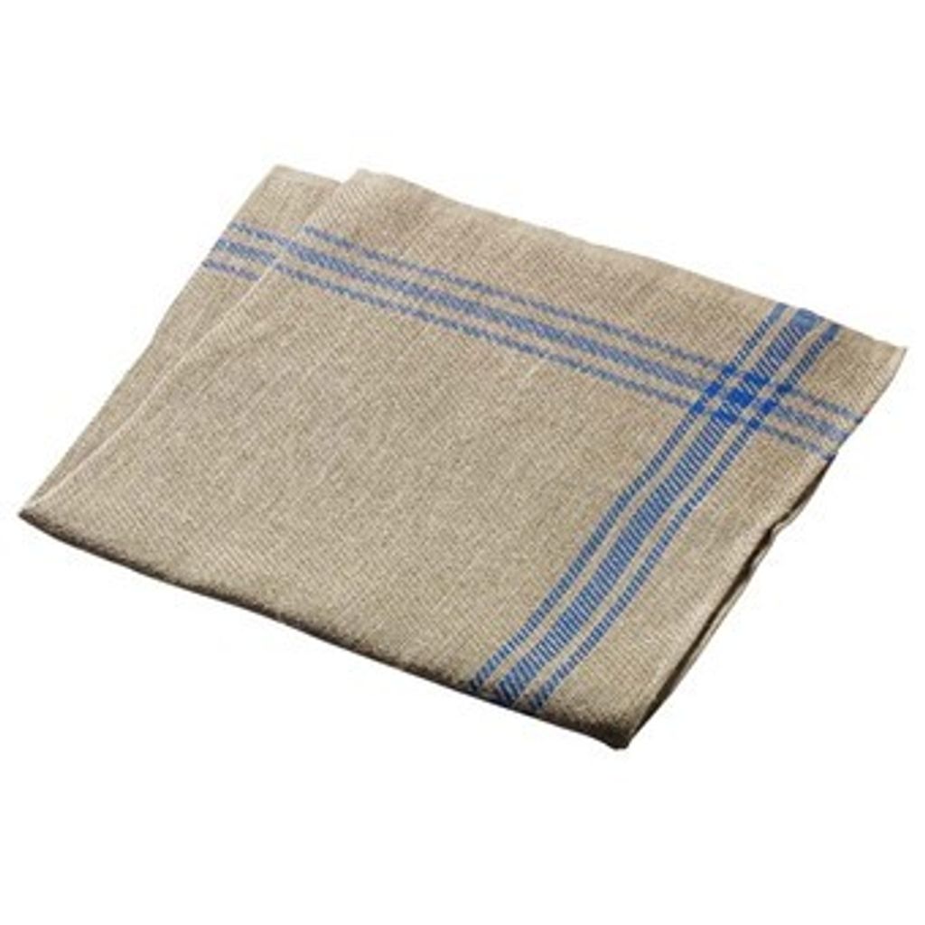 100% oblekt lin. 65 x 65 cm. Vävd i traditionell skyttelvävstol, därav de starka stadkanterna. Linblå rutning. Kypertvävd med stort gåsögemönster. Tvättråd: Blötlägg trasan i ljummet vatten innan första tvätten. Tvätta den sedan i 60-graderstvätt, gärna i maskin. Tvätta separat, eller tillsammans med t ex jeans och grova arbetskläder. Använd gärna linoljesåpa som tvättmedel. Upprepa med ny tvätt när den blir smutsig. Trasan blir bara bättre ju mer den används. Förpackad med banderoll med instruktionstext. Förbrukad trasa kan slängas på komposten. Lin blir jord igen.