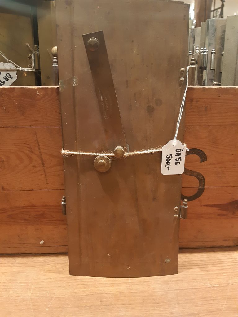Beskrivning av Kakelugnsluckor, Mässing <p>Mått luckor Bredd 14,5/13,5 cm Höjd 32,5 cm Avstånd gångjärn 16 cm Välvd modell</p>