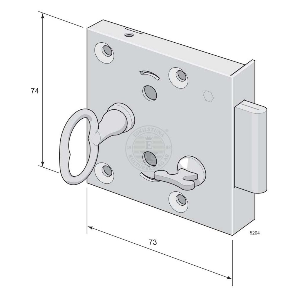 Beskrivning av Klosettlås 5204 V <p>Passande vinkelslutbleck 5209 eller krampa 5210. Passande nyckelskylt 5219 eller 5229.</p>