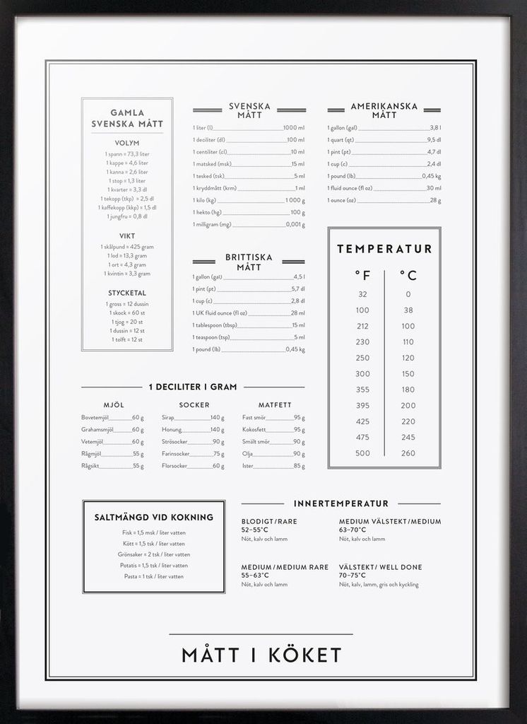 Kunskapstavla Mått i köket, Liten