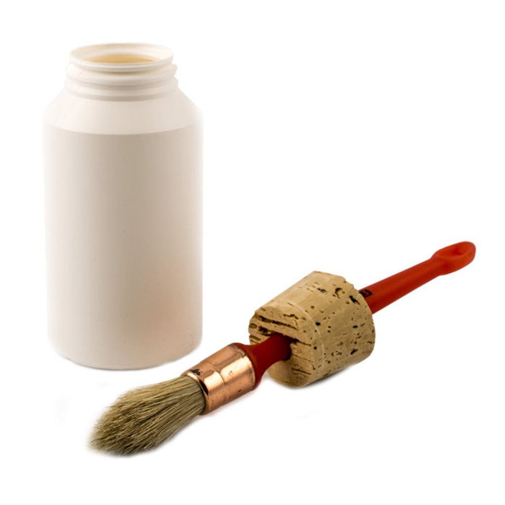 Specialburk för shellack att använda vid kvistlack. Penseln fästs genom korken. Genom att penseln alltid sitter i schellacklösningen torkar den inte och finns alltid nära till hands när kvistar ska lackas innan du målar med linoljefärg.