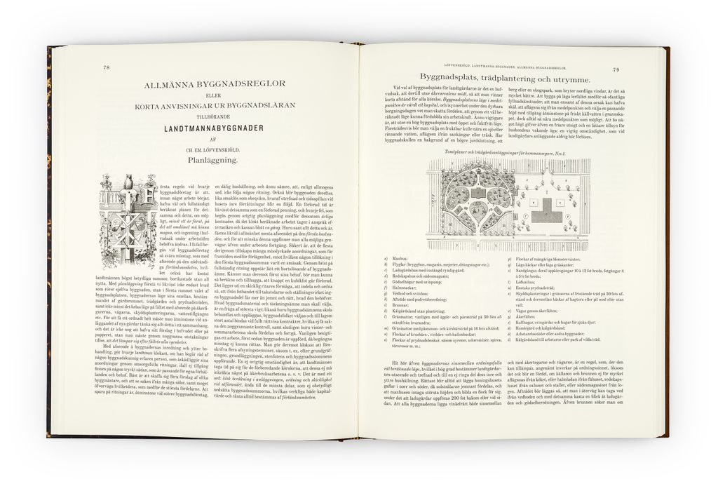 Lantbruksarkitekten Charles Emil Löfvenskiöld (1810 1888) drömde om att reformera den svenska landsbygden. En ny arkitektur präglad av både skönhet och rationalitet skulle bekämpa fattigdom och misär. Ljusa, rymliga och välplanerade hus för såväl människor som djur var grunden för ett humant och välmående samhälle. Först när det praktiska också var vackert var det verkligt funktionellt. Syftet med skriften Landtmannabyggnader, hufvudsakligen för mindre jordbruk från 1868 var att sprida de nya rönen i prisvärda och pedagogiska häften med överskådliga ritningar och förklarande texter. Idag är verket en arkitekturklassiker som haft stor inverkan på svensk byggnadskultur.