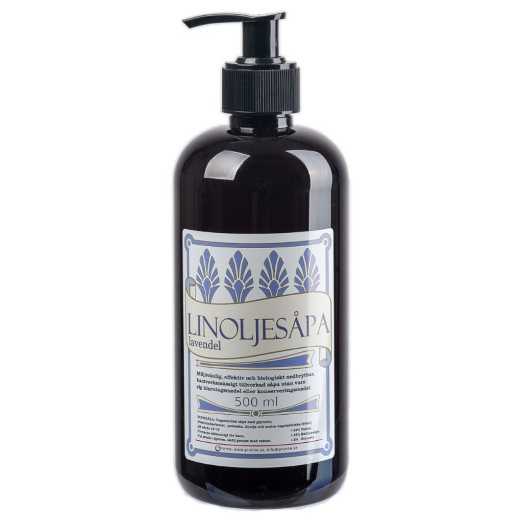 Beskrivning av Linoljesåpa Lavendel 0,5L m. pump, Grunne
