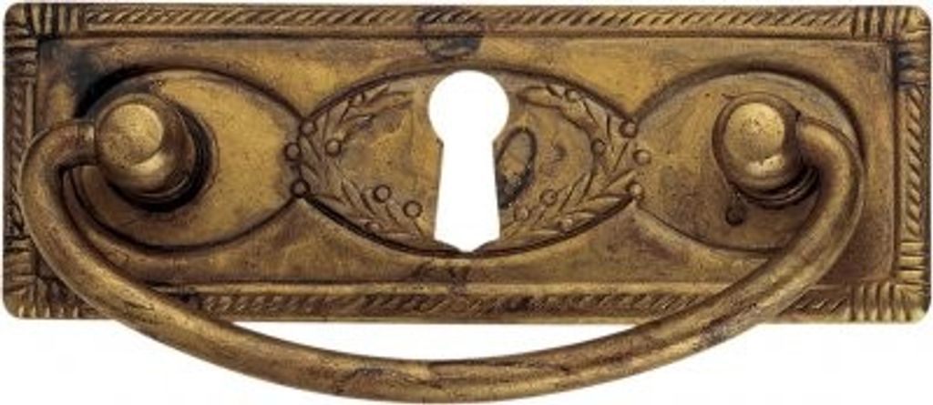 Beskrivning av Möbelhandtag m. nyckelhål Antikbehandlad mässing <p>97 x 44 mm. <br />cc 64 mm. <br />Antikbehandlad mässing.</p> <p>Skruv ingår.</p>