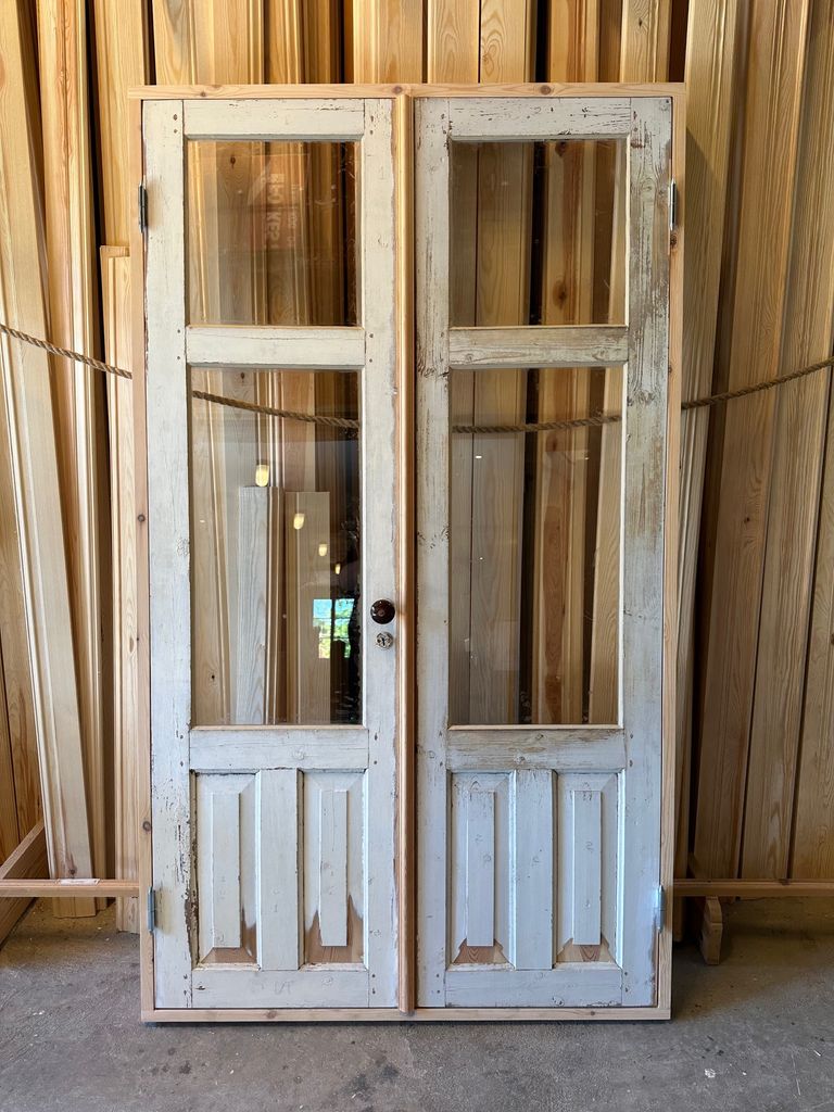 Pardörr med 2 speglar+glas, 125x215 cm, med karm