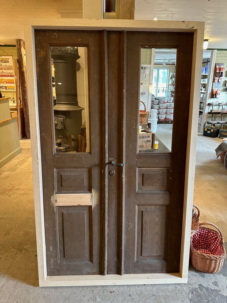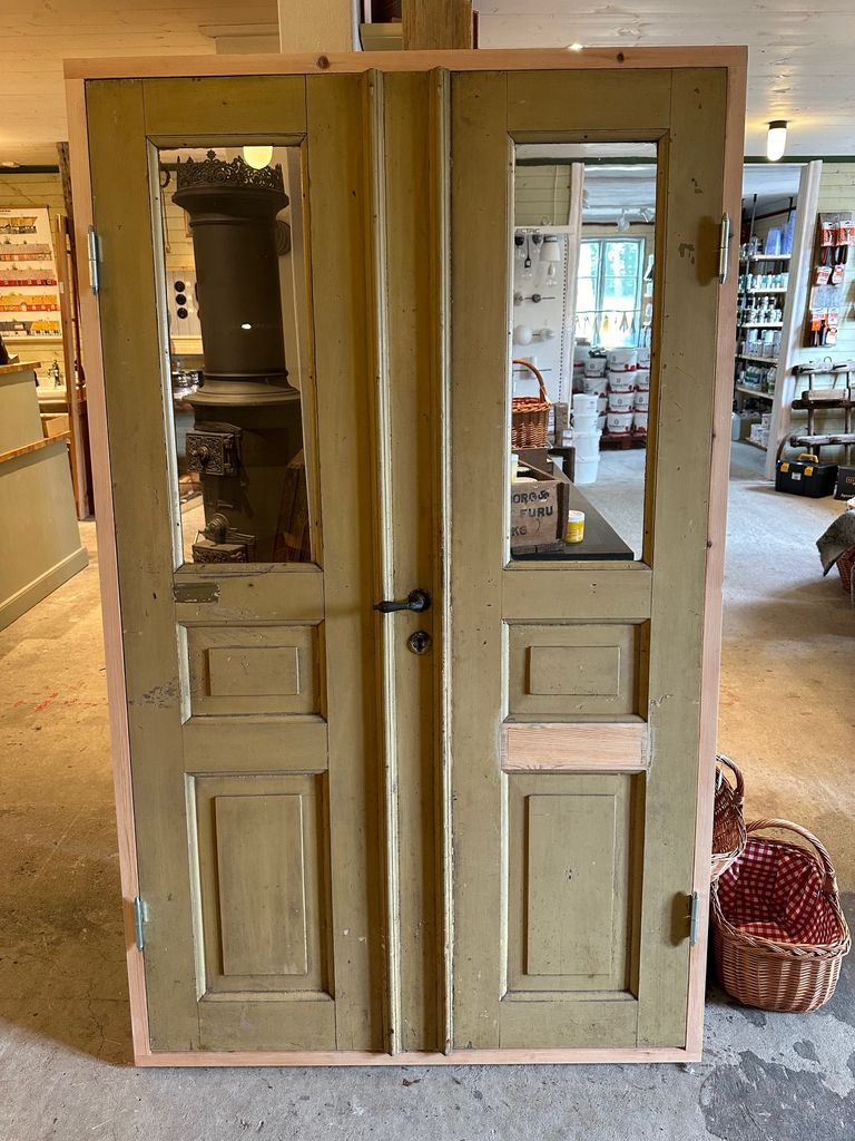 Pardörr med 2 speglar+glas, 113x186 cm, med karm (Reserverad)