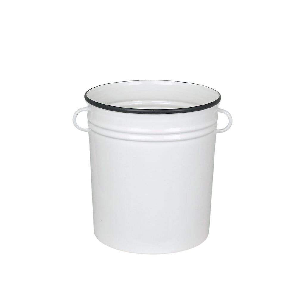 <p>Praktisk burk i vit plåt och grå kant med små handtag på sidorna. Perfekt för köksredskap eller bestick i köket, så ställ fram redskapen på köksbänken istället för att gömma dem i en låda. Passar även på kontoret eller i badrummet. Plåtburken tål ej maskindisk.</p>