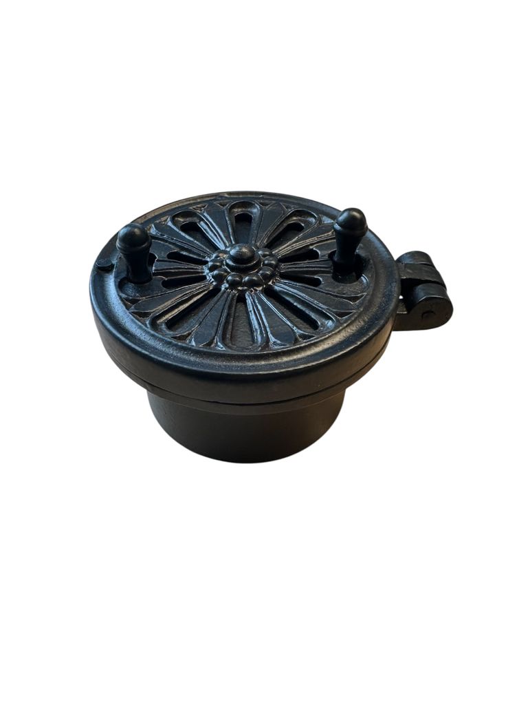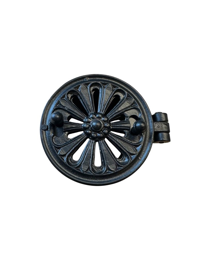 Stilren ventil med vackert vridspjäll och öppningsbar lucka. Vrid på ventilen för att öppna och stänga spjällen och anpassa ventilationen. Klassisk utefter gamla förlagor.