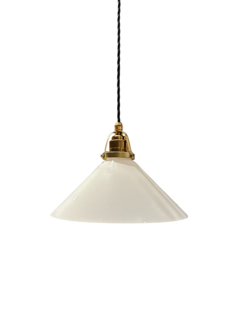 Beskrivning av Skomakarlampa, svart tvinnad sladd, 25 cm djup skärm