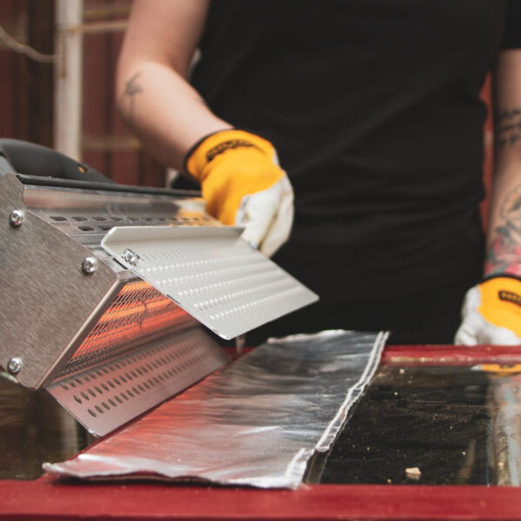 Skydda känsliga ytor under IR-värmning med vår flexibla och slittåliga aluminiumduk. Perfekt för att skydda fönsterglas, lister och möbler vid detaljarbeten.