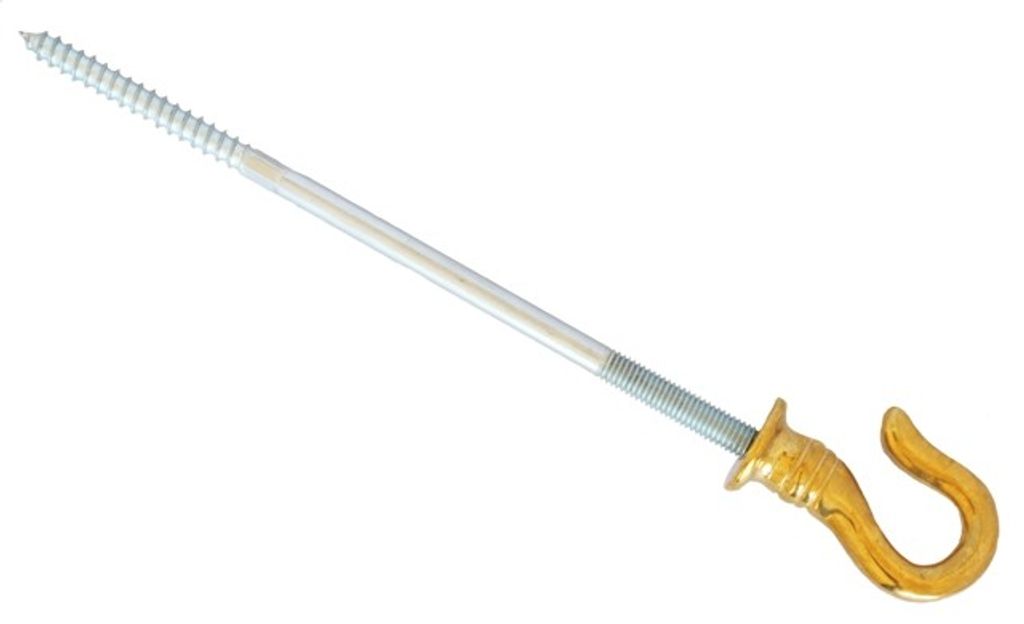 Längden på själva skruven varierar. De flesta är 16-17 cm. Men har några som är 19-21 cm. Själva kroken i mässing är 58 mm.