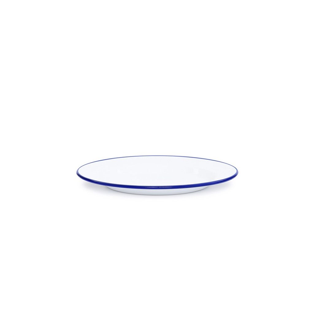 Beskrivning av Tallrik emalj blå <p>Emaljtallrik 26cm.</p> <p>Vit med blå kant.</p> <p>Tål maskindisk.<br />Ej microvågsugn.</p>