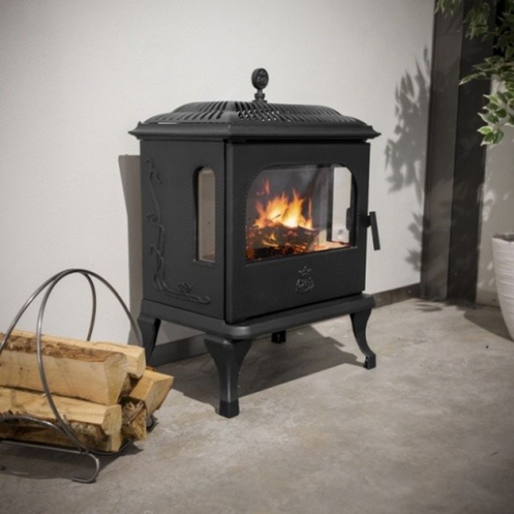 Modellen brinner rent och fint och har mycket bra testvärden. Inredning i Vermiculite och brännkammaren är utrustad med CB-teknik (Clean Burning) vilket innebär en renare, miljövänligare förbränning. Victoria är också utrustad med en kokplatta. Modellen går endast att ansluta bakåt. Kaminen klarar av en vedlängd upp till 40 cm.